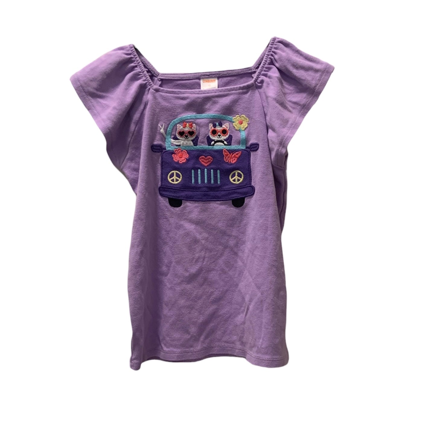 lavender flutter sleeve shirt with embroidered cats in groovy van